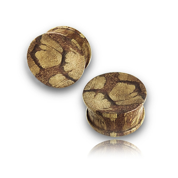 Двояковогнутые плаги из дерева зебрано с оригинальным мраморным рисунком
