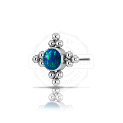 Вставка из имплантационного титана 6Al-4V-Eli ASTM: F-136 для безрезьбовых украшений. Украшена лабораторным опалом диаметром 3мм.