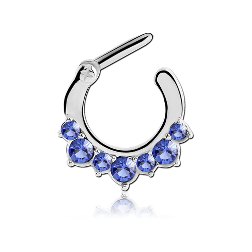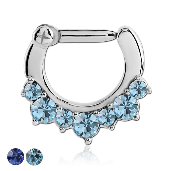 Кликер для септума из хирургической стали 316L, украшенный семью кристаллами.