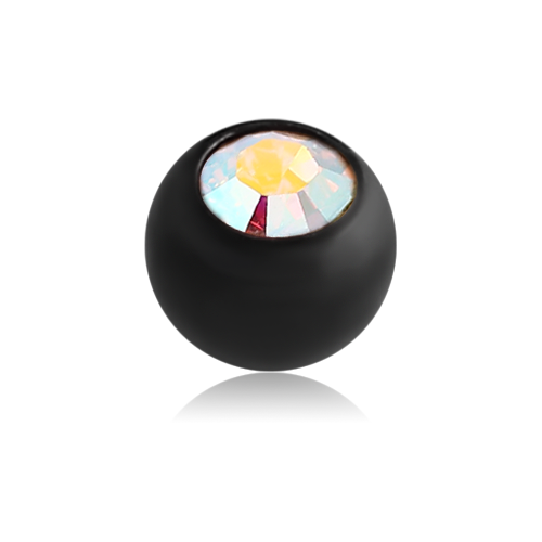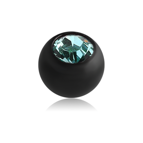 Шарик из имплантационного титана ASTM F-136 с чёрным PVD покрытием украшен цветным стразом. Подходит для украшений с внешней резьбой.