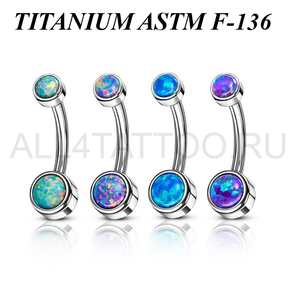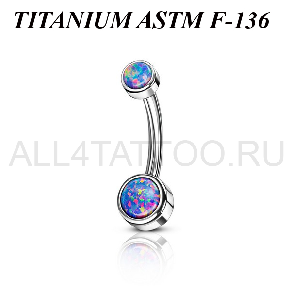 Банан из имплантационного титана 6Al-4V-Eli ASTM: F-136 с внутренней резьбой. Украшен ярким искусственным опалом.
