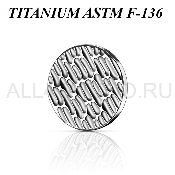 Накрутка из имплантационного титана 6Al-4V-Eli ASTM: F-136 в форме диска с рельефным рисунком. Подходит для украшений с внутренней резьбой.