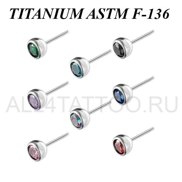 Вставка из имплантационного титана 6Al-4V-Eli ASTM: F-136 для безрезьбовых украшений. Украшена фианитом.