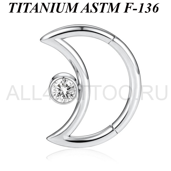 Кликер из имплантационного титана 6Al-4V-Eli ASTM: F-136 в форме полумесяца. Украшен прозрачным фианитом диаметром 3мм.