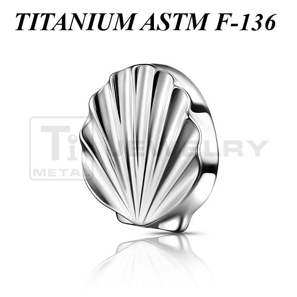 Накрутка из имплантационного титана 6Al-4V-Eli ASTM: F-136 в форме ракушки. Размер декоративной части 6х5мм. Подходит для украшений с внутренней резьбой толщиной 1 и 1,2 мм.