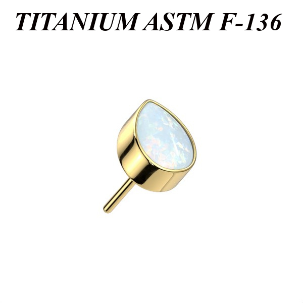 Вставка для безрезьбовых украшений из имплантационного титана 6Al-4V-Eli ASTM: F-136 с золотым PVD покрытием. Украшена лабораторным опалом.