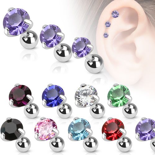 Набор из трех микроштанг из хирургической стали 316L с круглыми кристаллами диаметром 3, 4 и 5 мм.