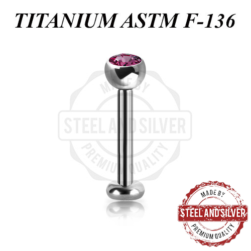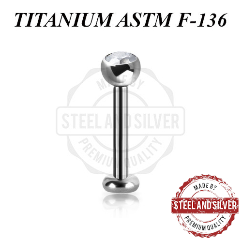 Лабрет с внутренней резьбой из имплантационного титана 6Al-4V-Eli ASTM: F-136. Украшен накруткой с кристаллом Premium Cubic Zirconia.