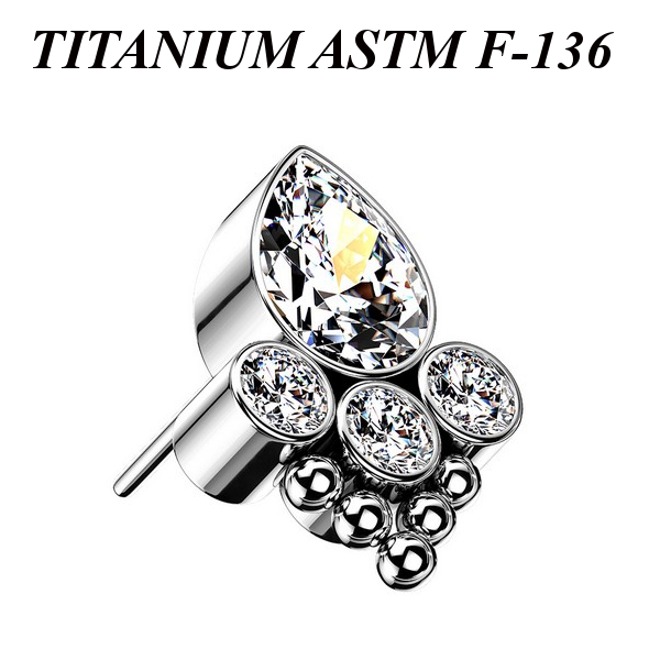 Вставка из имплантационного титана 6Al-4V-Eli ASTM: F-136 для безрезьбовых украшений. Кластер украшен прозрачными фианитами. Размер кластера: 6х8мм.