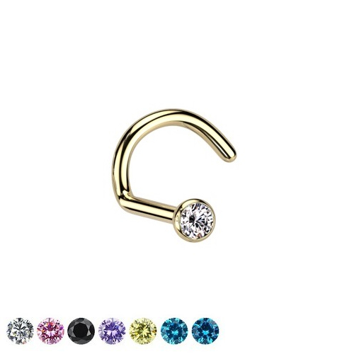 Нострил из хирургической стали 316L с золотым PVD покрытием. Украшен фианитом.