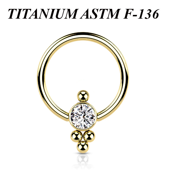 Кольцо из имплантационного титана 6Al-4V-Eli ASTM: F-136  с золотым PVD покрытием. Украшено кластером с фианитом.