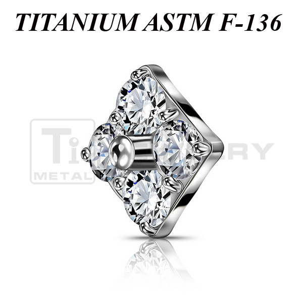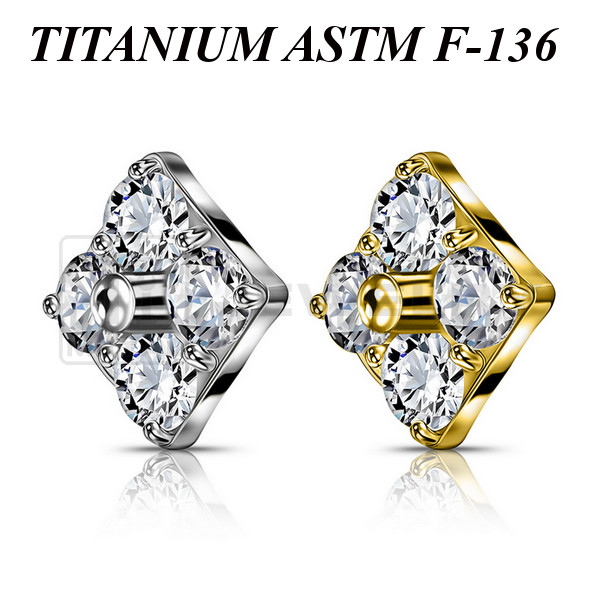 Накрутка из имплантационного титана 6Al-4V-Eli ASTM: F-136 с прозрачными фианитами. Представлена в двух вариантах: классическая титановая и с золотым PVD покрытием. Размер накрутки: 4,3х4,3мм. Подходит для украшений с внутренней резьбой толщиной 1 и 1,2 мм.