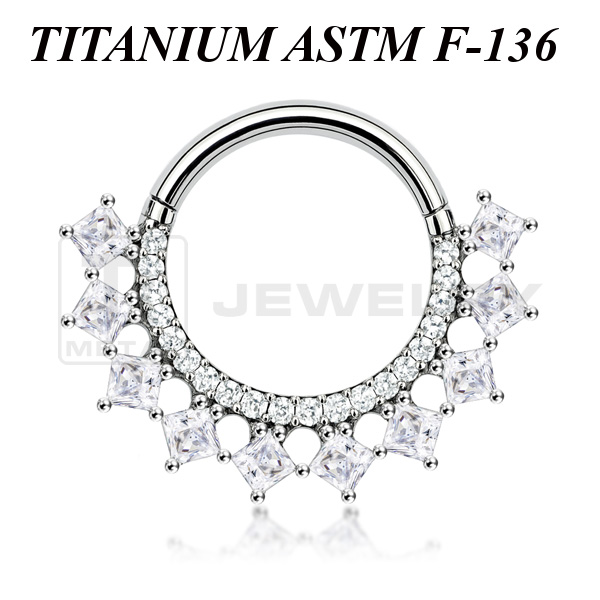 Кликер из имплантационного титана 6Al-4V-Eli ASTM: F-136 с сетом прозрачных фианитов.